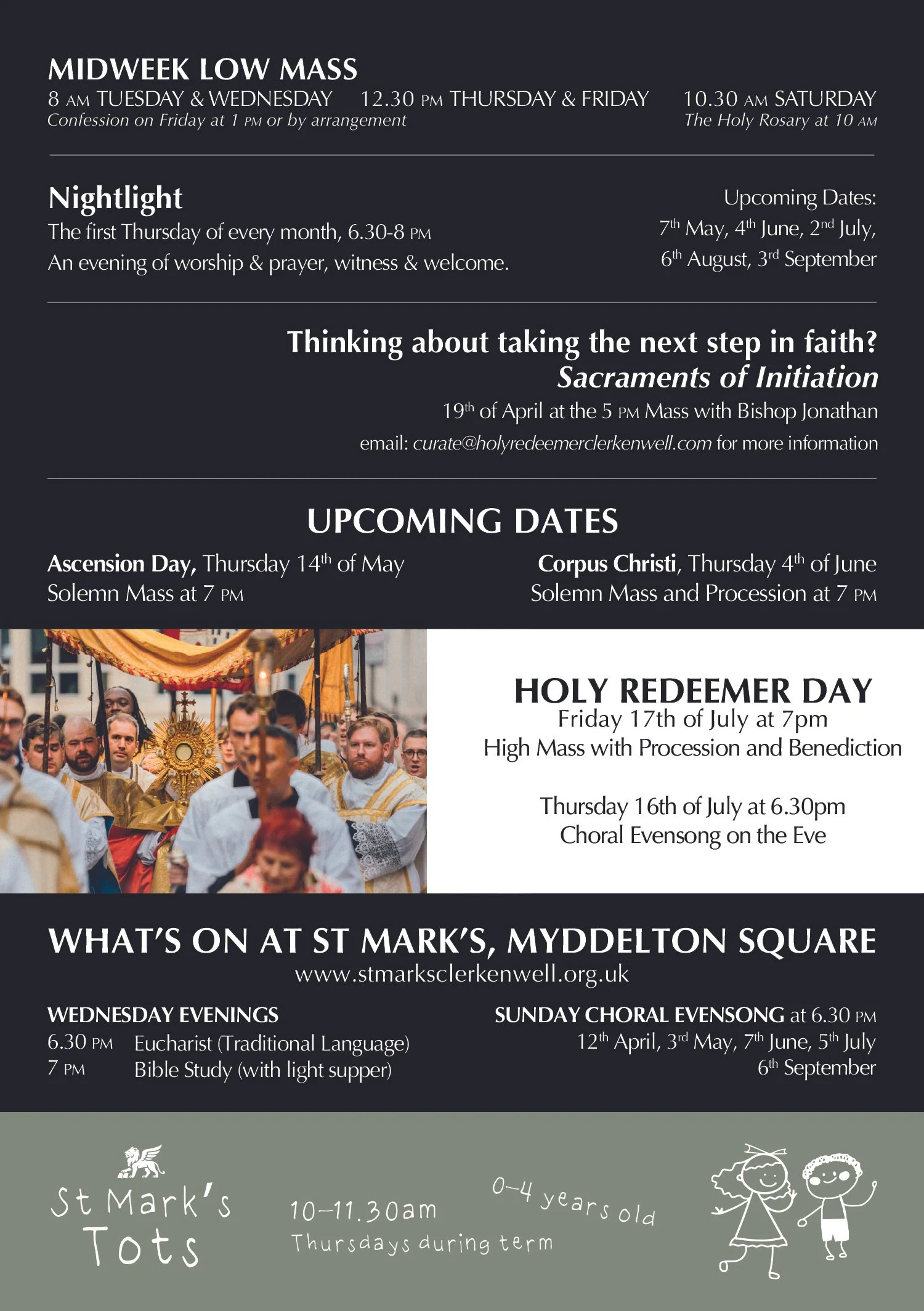 Summer 2026 Term Card Download our Term Card to keep up to date with everything happening at Our Most Holy Redeemer. Download Term Card 2026 Download Term Card 2026 Contact us Contact us New to London? New to London?